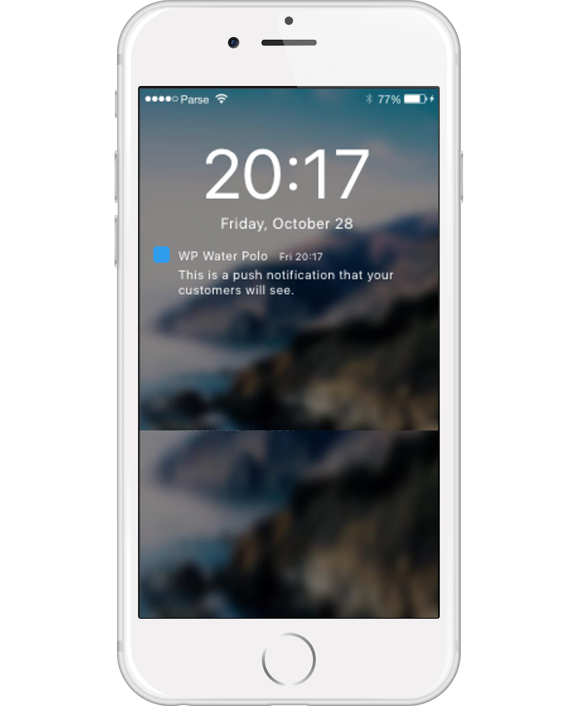 Push notifications allows you to send a message directly to someones mobile device. When your customer opens their device, your message is displayed in their locked screen or they can reveal the messages at a later time..